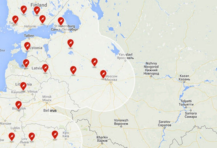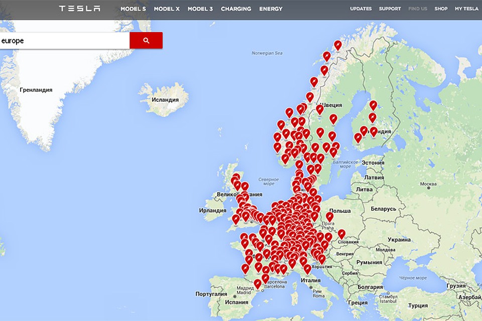 Карта быстрых зарядок