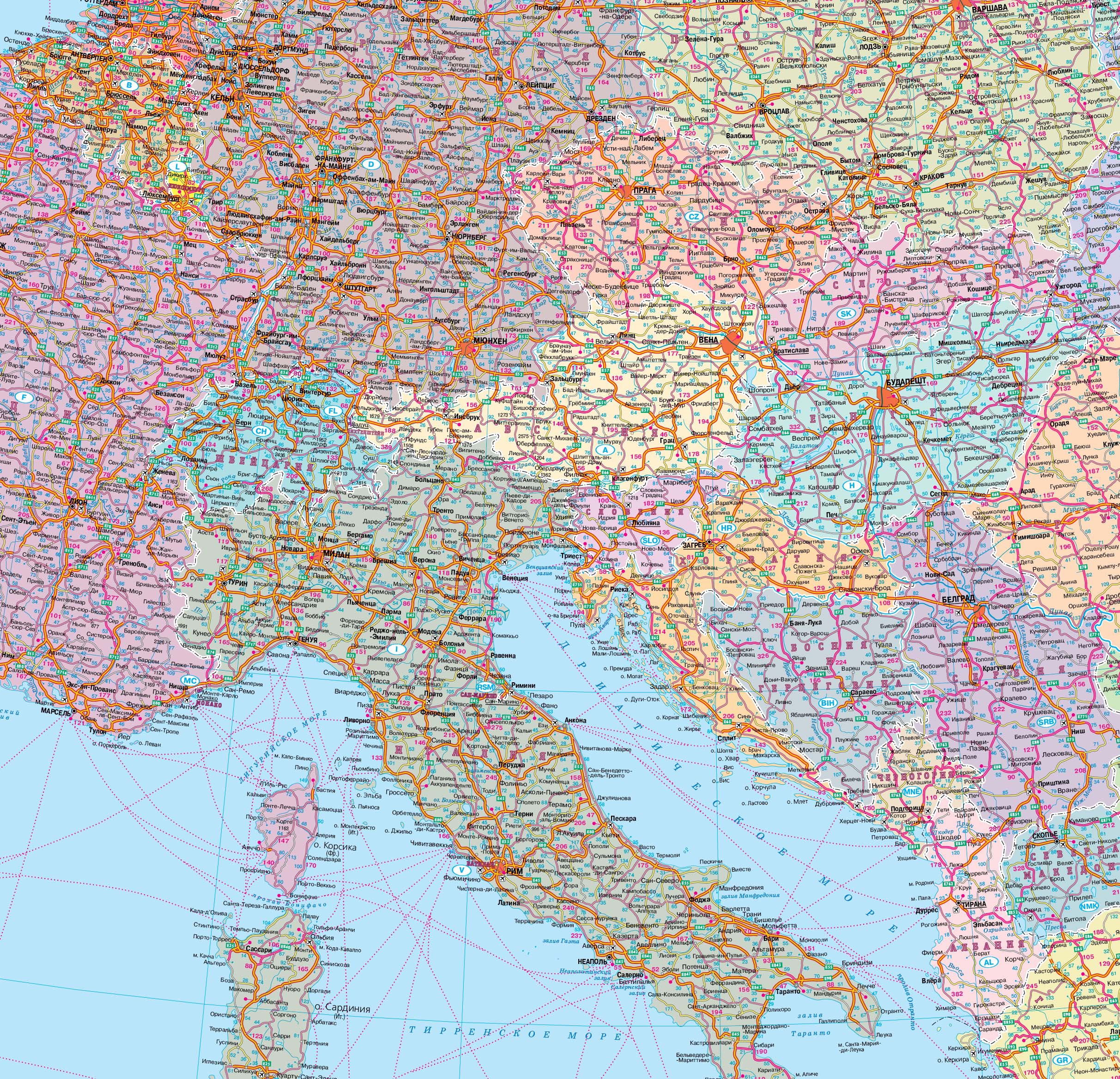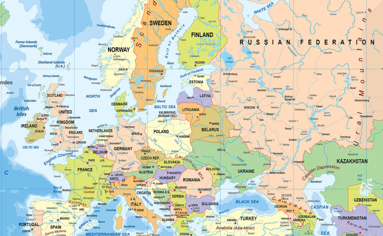 Карта европы с объектами
