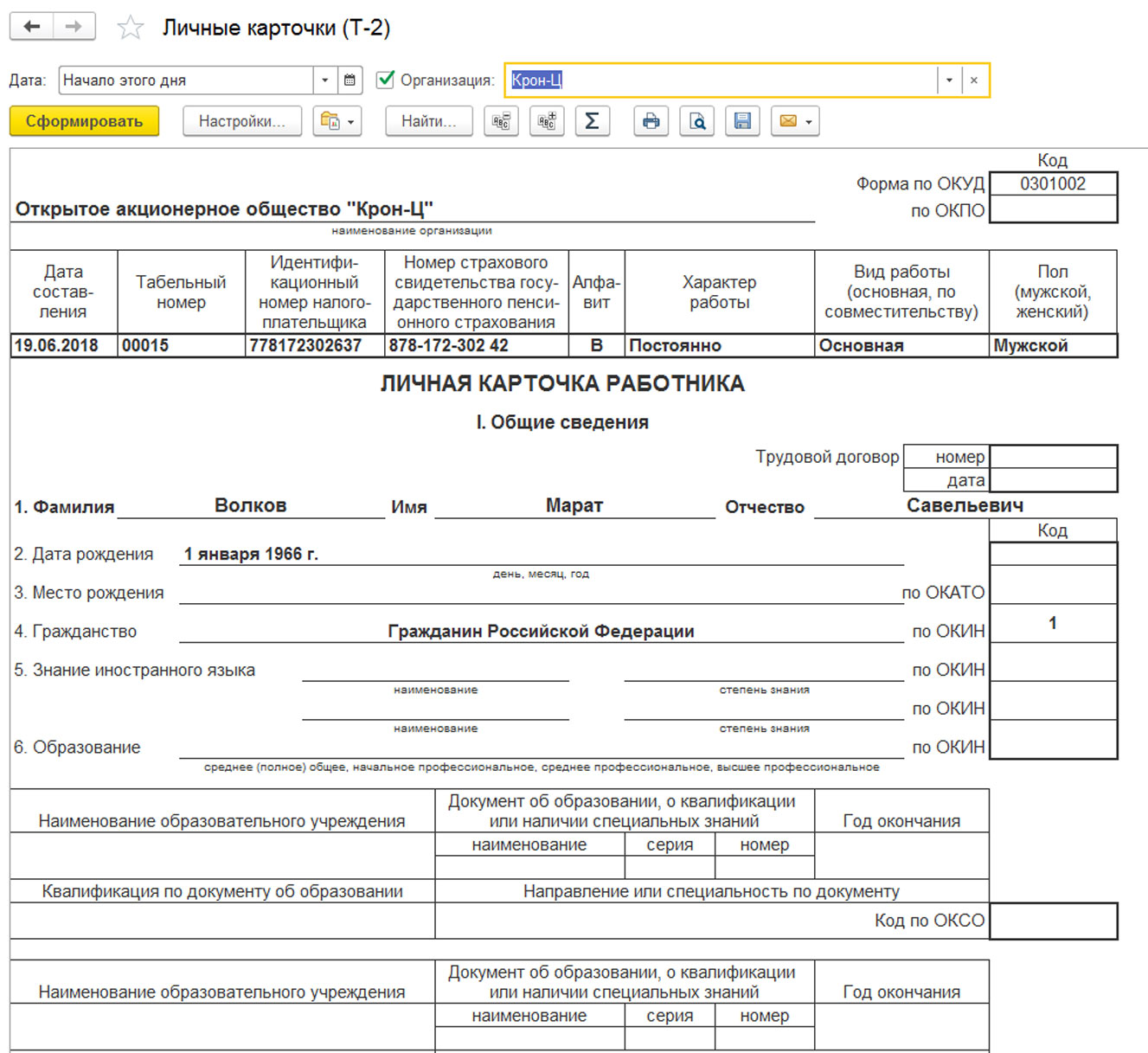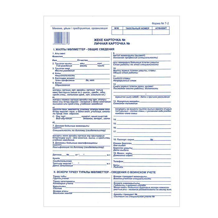 Карта формы т 2