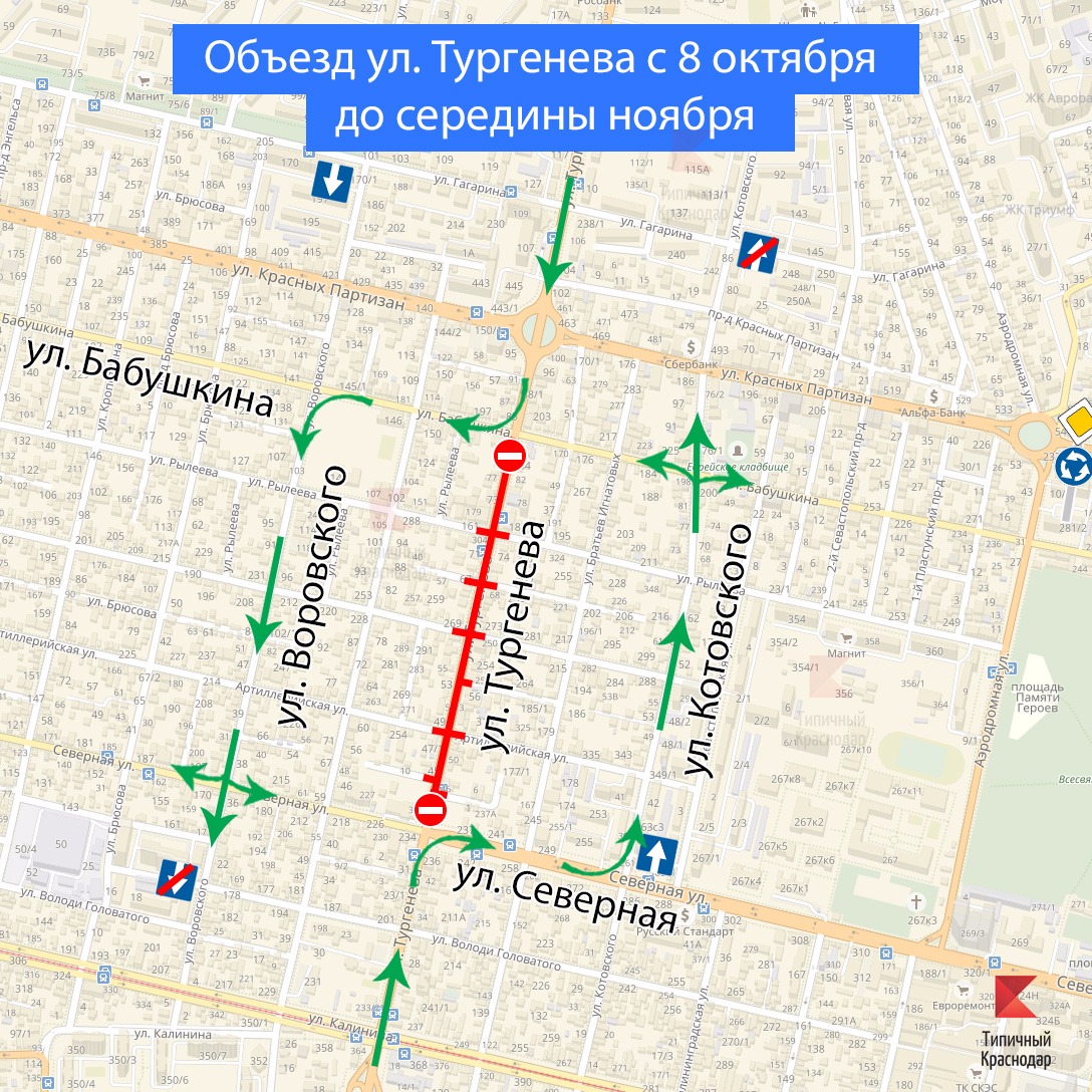 Карта краснодара тургенева