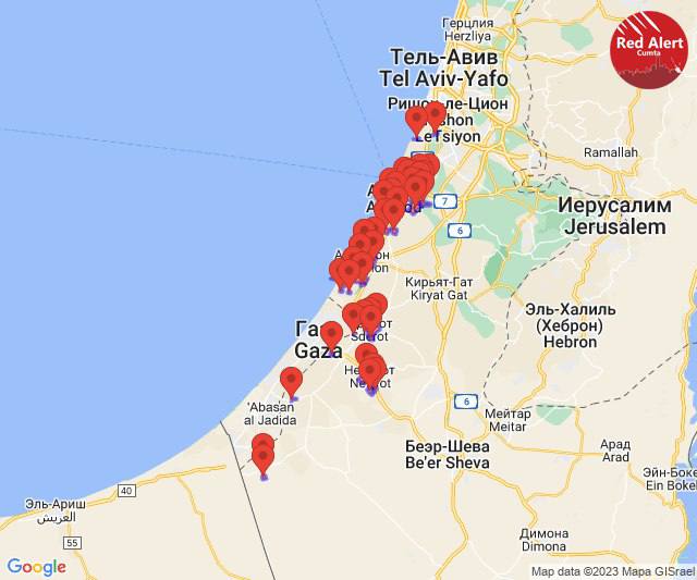 Карта обстрела израиля