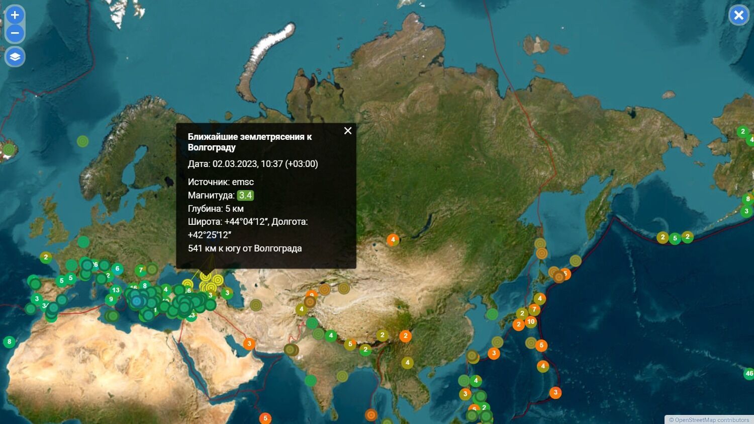 Карта землетрясения в азии