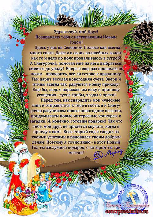Многие детки каждый Новый год пишут письмо Деду Морозу . В нем дети просят у дедушки подарки за хорошие поведение и за свои успехи в ушедшем году . Также пишут пожелания для Деда Мороза . В данной категории мы предлагаем . . .