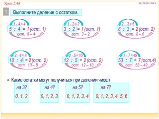 Закрепление деления двузначного числа на однозначное, двузначного на двузначное, деление с остатком . 3 класс ( 1 - 4 ) по программе М .И .Моро .
