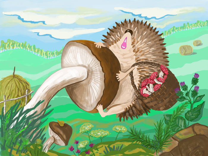 Картинка Еж С Грибами
