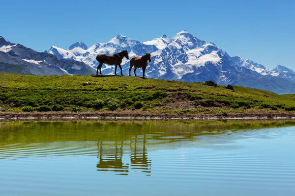 Картинка для рабочего стола: лошадь, отражение, горы . . .