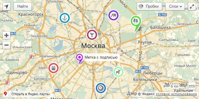 Добавление метки на карту — Технологии Яндекса
