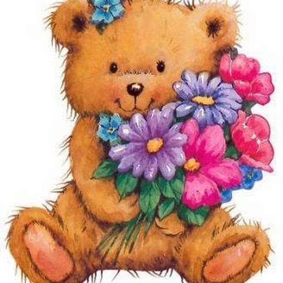 Картинка Мишка С Цветами В Руках