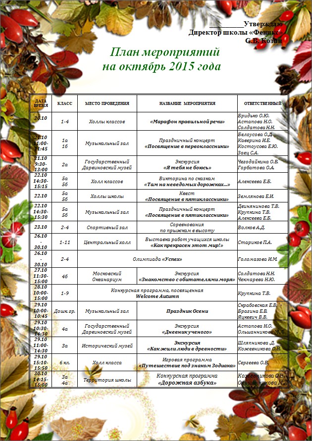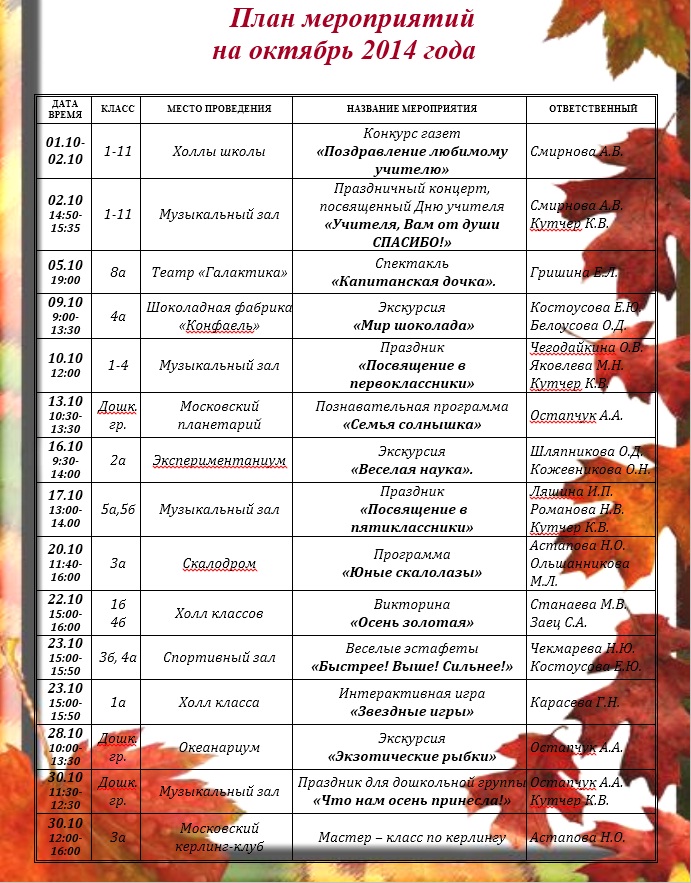 Картинка План На Октябрь