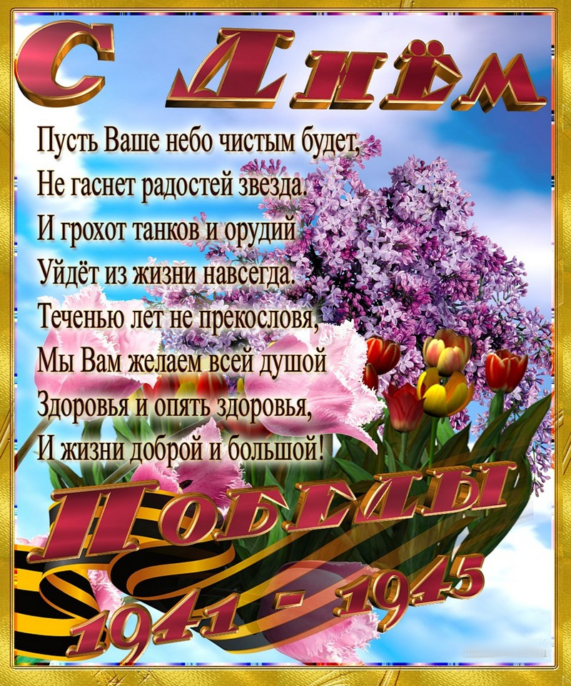 С праздником! С Днем Великой Победы! Картинка со стихами . С наступающим 9 мая! 1941-1945 Мы помним! С Днем Победы Россия! Картинка анимация, тюльпаны . С Великим Праздником! Картинка со стихами . Пусть звучат салюты! Открытка на 9 мая .