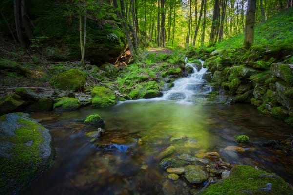 Классная картинка из раздела Природа . Теги: #деревья #течение #пейзаж #камни #водопад #природа #мох #речка #лес . Размер фотографии 5120x3413 .