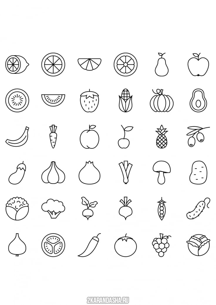 Раскраска ОВОЩИ и ФРУКТЫ (55 картинок) | Семейная Кучка