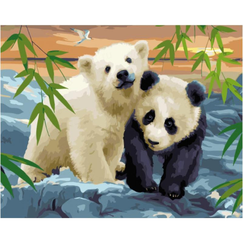 Красивая раскраска панда с мишкой распечатать