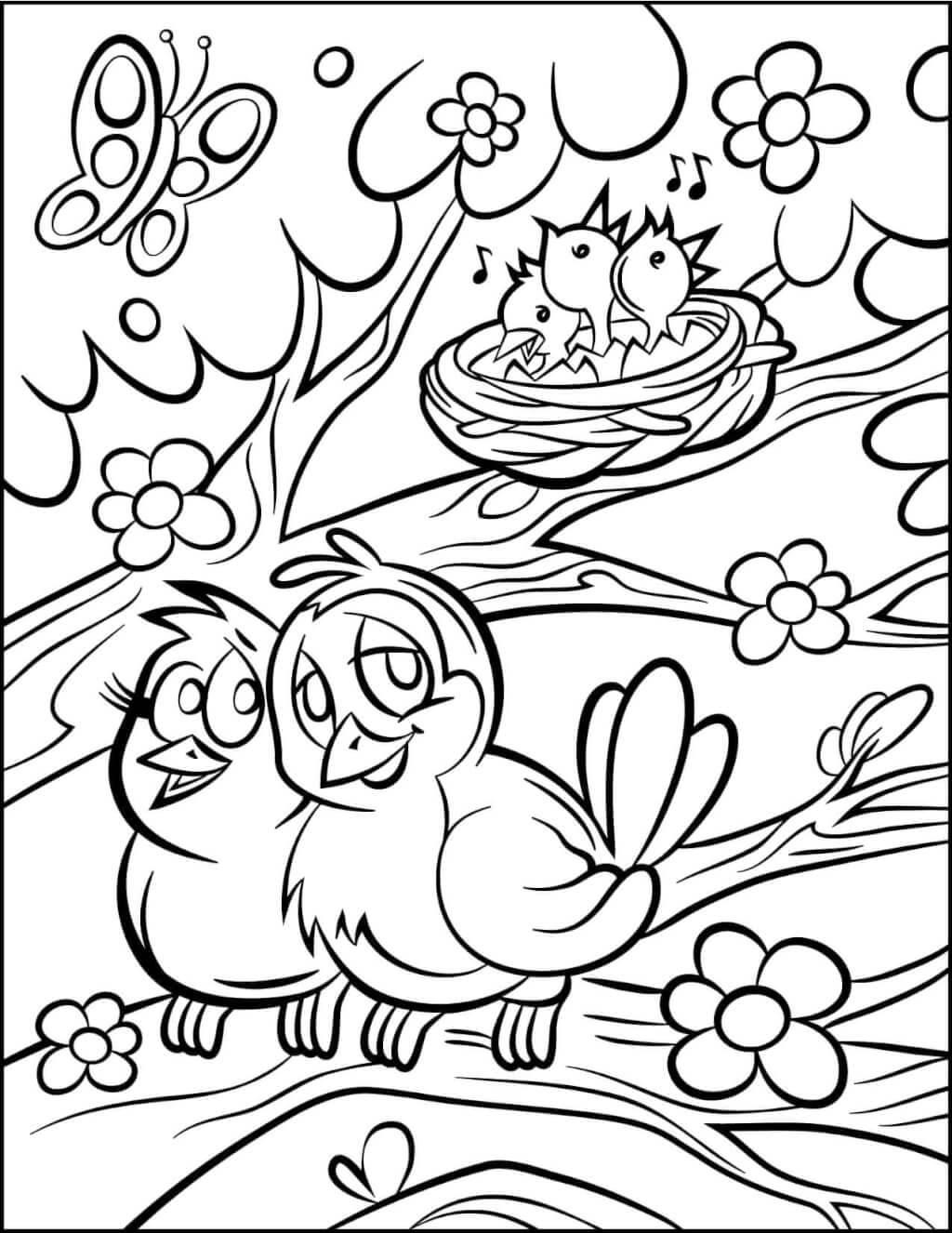 Раскраска Птицы для детей распечать бесплатно