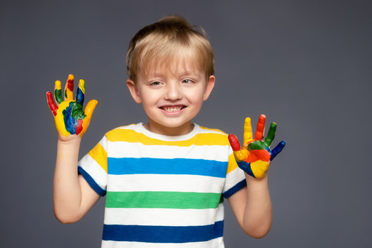 Улыбается ребенок картинка . . . Улыбающийся ребенок разговаривает на смартфоне и показывает знак идеи на фиолетовом . . . стоящего с рукой на талии и улыбающегося камере, . . .
