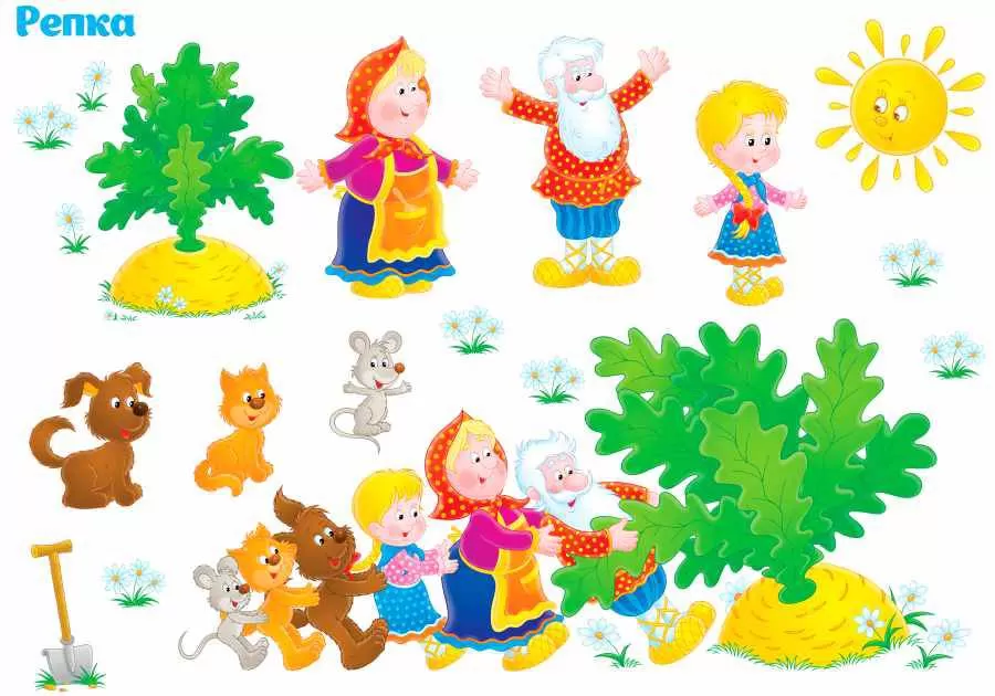 Клипарт Иллюстрации к сказке Репка на прозрачном фоне