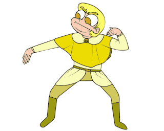 Облик в карточном мире [ ] Одет в камзол и берет в бирюзовых цветах . Штаны окрашены в тёмно-синий цвет . Также, ему был выдан щит и алебарда . Характер [ ] Скромен, не уверен в себе и раним .