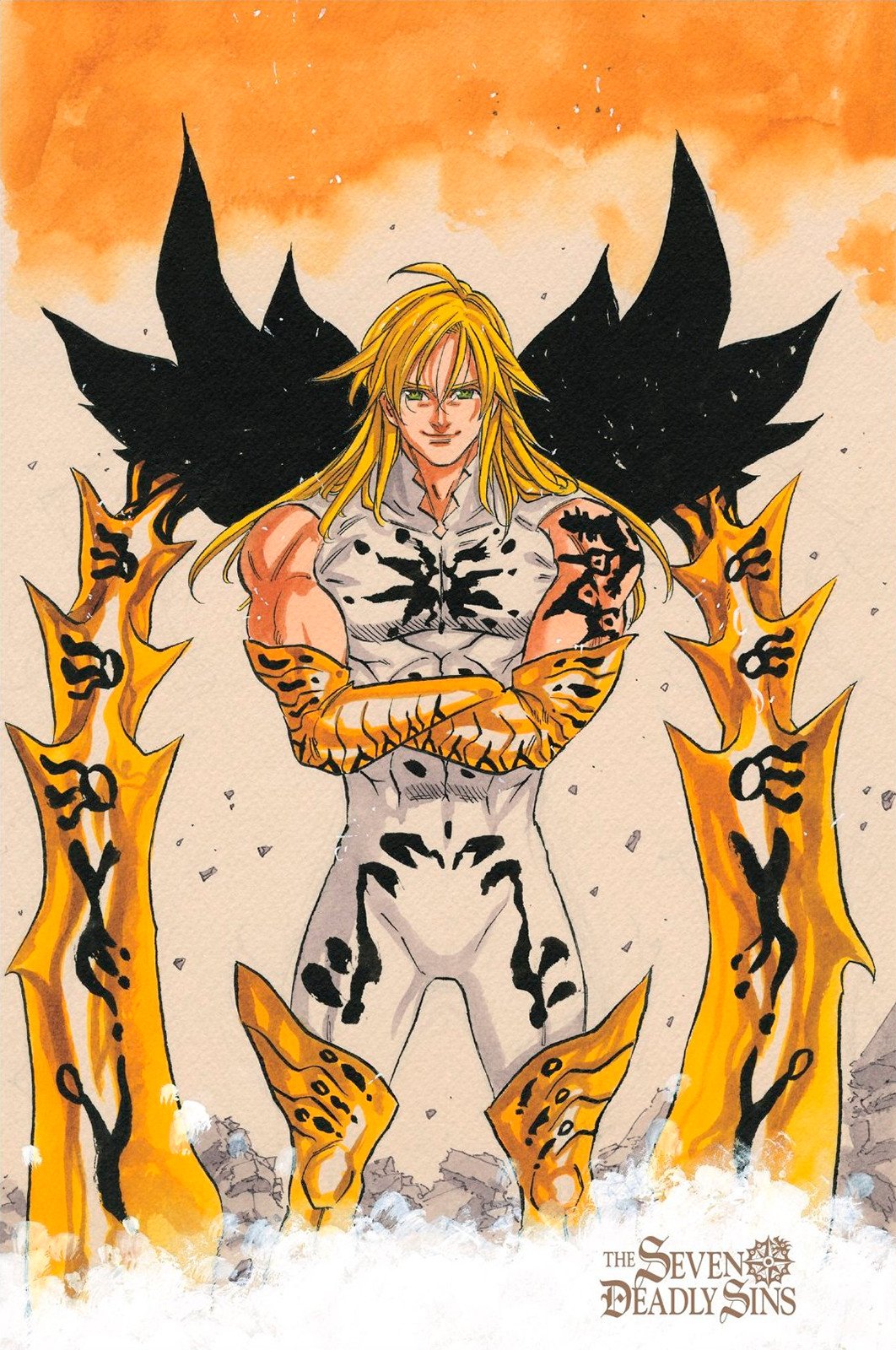 Семь Смертных Грехов 「七つの大罪 Nanatsu no Taizai」- совместная атака Семи Смертных Грехов, в которой Бан использует Охотничий Фестиваль и Бандитское Убийство, а Мелиодас отражает атаки каждого . . .