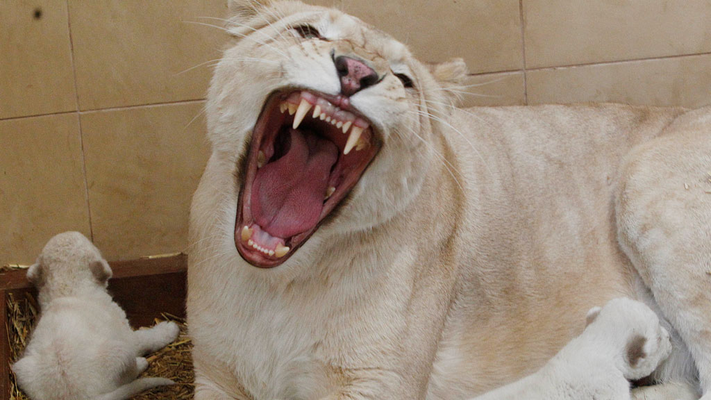 В Китае родились редчайшие белые львята (8 фото + 1 видео)