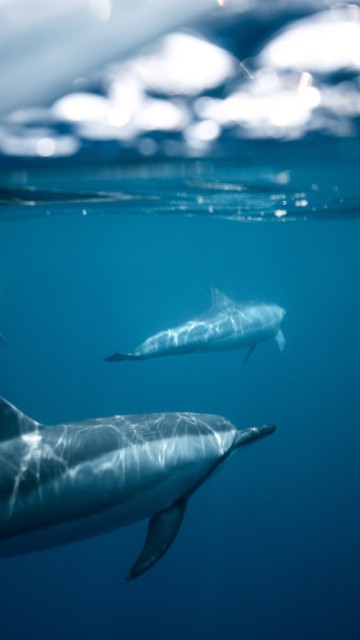 Заставка на рабочий стол: Пара белых дельфинов под водой