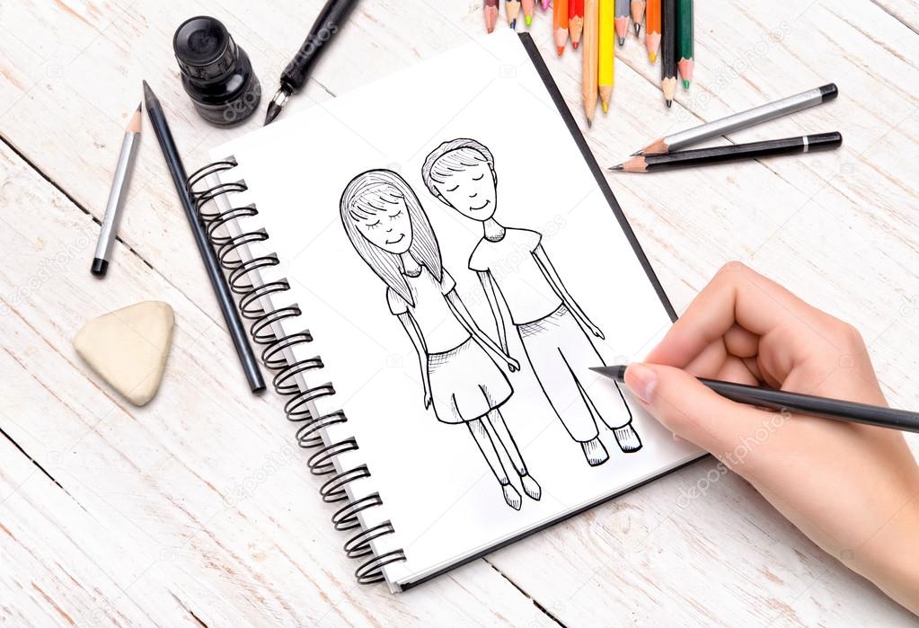 Порой у хорошего талантливого художника нет с собой холста и кистей . Но именно этот момент хочется запечатлеть . Тогда на помощь приходит обычный блокнот, если он есть под рукой .