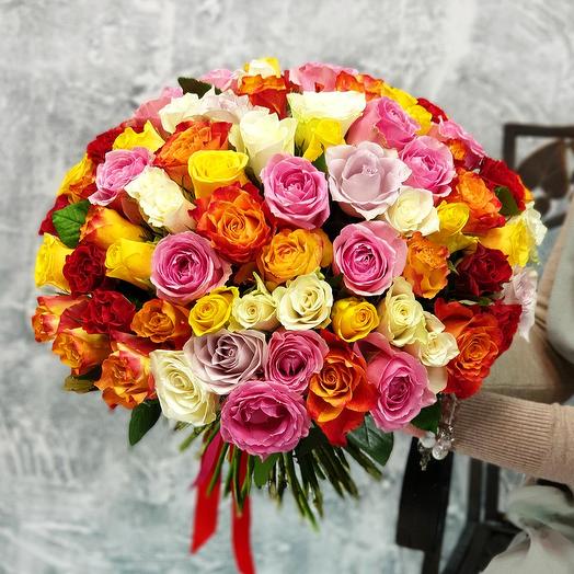 Букеты из разноцветных роз (67 фото)