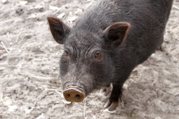Портрет черной свиньи, смотрящей в камеру — Стоковое фото . . .