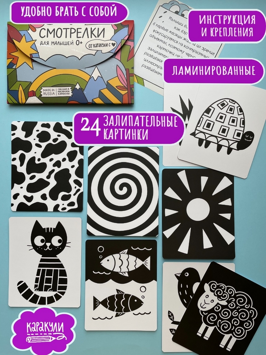 Черно-белые контрастные картинки для новорожденных .