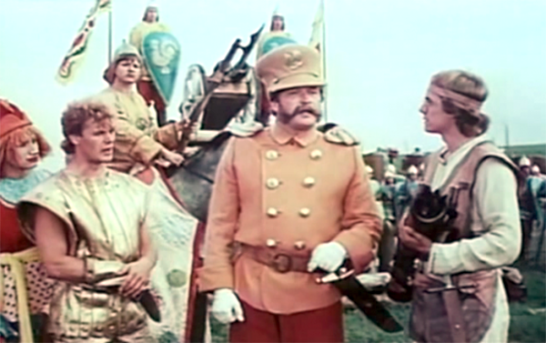 Лубочные картинки жизни русской деревни и царского двора с примесью иронично показанной клюквы и ездящих сами собой печек в первой половине фильма контрастируют с картинами войны, которая показана во второй .