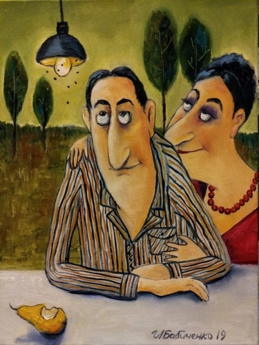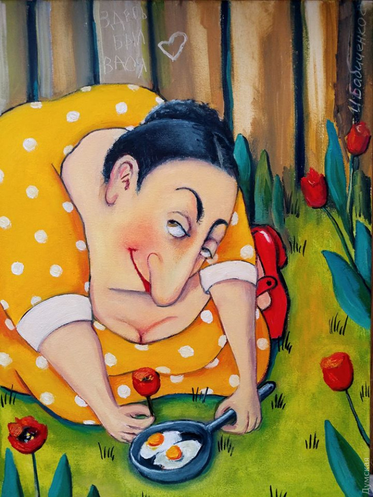 Ирина Бабиченко родилась в 1972 году в Одессе, где живет и сейчас . Она создает необыкновенно позитивные картины, наполненные тонким одесским юмором . Работает как в технике масляной живописи, так и пишет акрилом .
