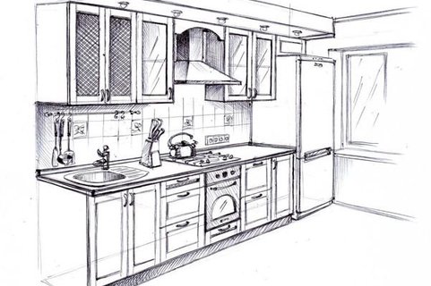 Рисунки кухни: проект дизайна карандашом, нарисовать . . .