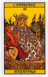 Данная карта Таро Императрица акцентирует гармонию во всех природных циклах, а также олицетворяет земные заботы . Внутренним смыслом карты является девиз: твори и процветай .
