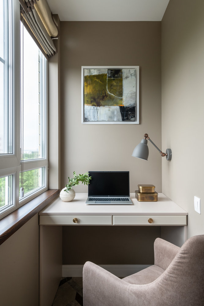 Красивый интерьер комнат с компьютером . В каком месте можно установить компьютер или ноутбук в спальне, гостиной, кухне и детской комнате . Современные идеи на фото .