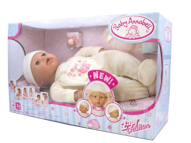 Очень нравится мне эта игровая куколка для девочек — Анабель, Baby Annabell, новая версия с мимикой, 2012 . У моей дочери были другие версии этой куколки, старее — 2,3 и 4 . очень хороша озвучка была у 2, 3 — интереснее 4 .