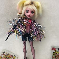 О прошивке волос Харли: прошивка такая же как у кукол фицен, шевелюра не густая, но и не такая уж лысая (хотя за такие деньги могли бы и лучше сделать волосы), волосы не жирные . . .