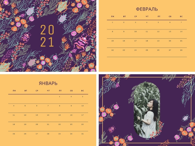 Мы собрали лучшие шаблоны календарей на 2021 год от Canva вместо скучных календарей из магазинов вашего города . Нажимайте на заголовок и переходите к подходящему разделу статьи . Сделайте свой календарь! Шаблоны фотокалендарей на 2021 год .