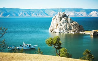 Обои для телефона россия озеро байкал берег утес скала катер