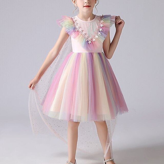 Нарядное платье с цветочным принтом безусловно выделит юную красавицу на любом торжестве . Белоснежный ободок с бантиком и волосы, аккуратно собранные в пучок создадут образ маленькой леди на празднике .