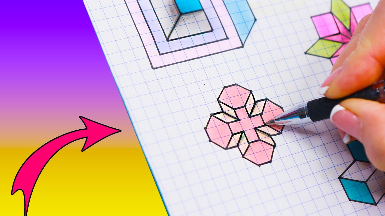 Рисунки по клеточкам в тетради: легкие для начинающих . . .