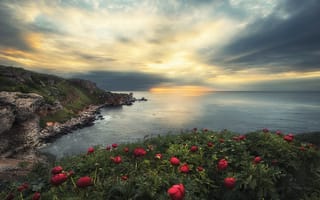 Цветы и море (56 фото) 1 . Море весной . 2 . Амальфи Италия закат . 3 . Кувшинка камни . 4 . Кантабрии побережье Испания .