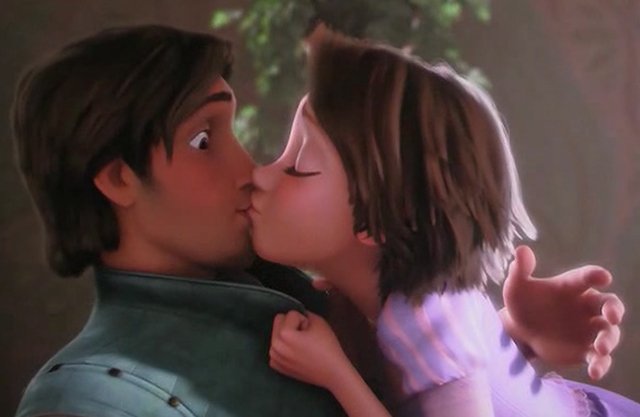 Раскраска Рапунцель принцесса с короткими волосами целует . . .