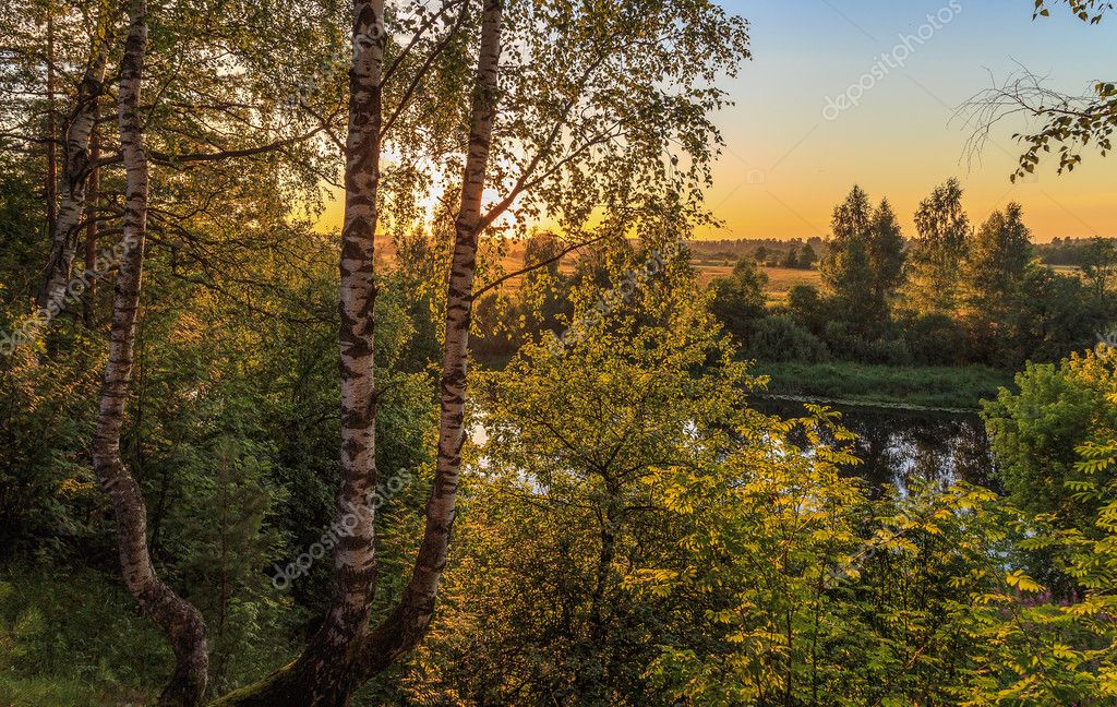 Картинки С Березами И Рекой И Солнцем