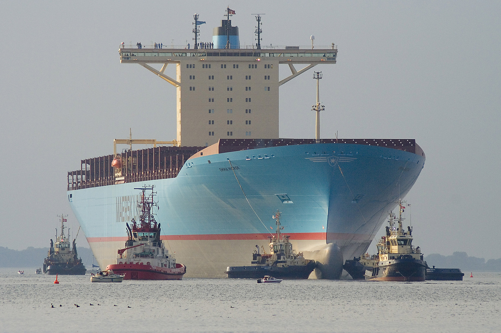 В списке самых больших кораблей Emma Maersk занимает второе место среди суден, находящихся в строю до сих пор . Это первый контейнеровоз класса E из восьми, принадлежащих A . P . Moller-Maersk Group . На воду его спустили в 2006 году . Судно способно примерно 11 тысяч ДФЭ . Его длина 397,71 метра .