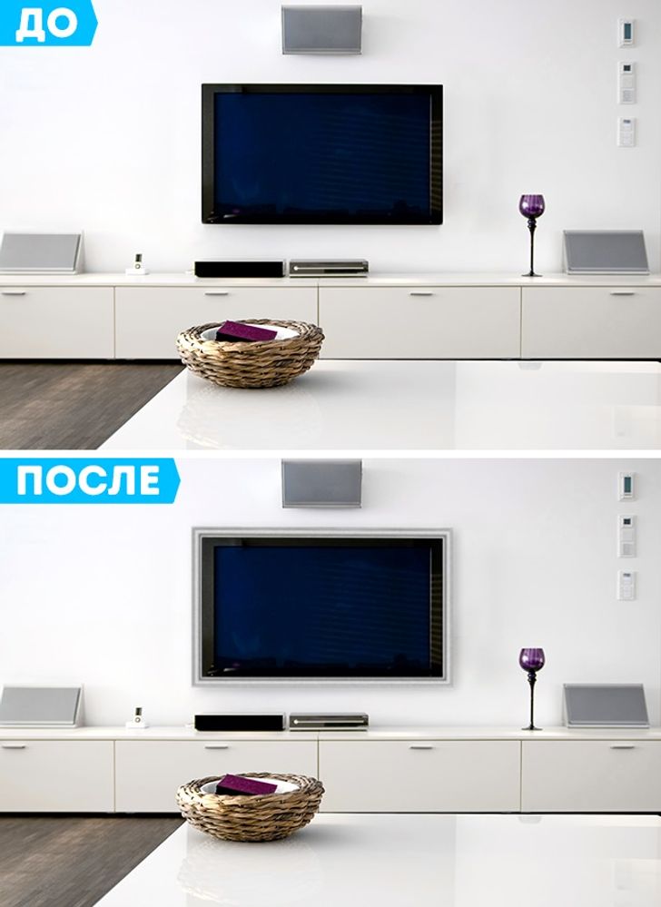 Выбери картинки, задающие настроение . А еще постарайся обыграть линии, остерегайся многократных отражений картин в зеркале — это визуально уменьшит пространство . Ночник или зеркало