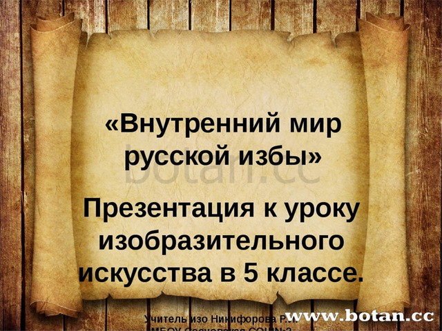 Внутренний мир русской избы - презентация (5 класс)