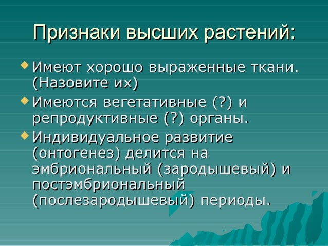 Высшие растения определение, характеристика и признаки