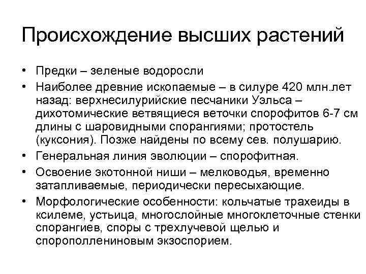 Появление высших растений ознаменовало новую эру жизни планеты . Их возникновение связано с геологическими изменениями в строении материков и необходимостью . . .