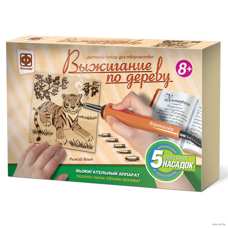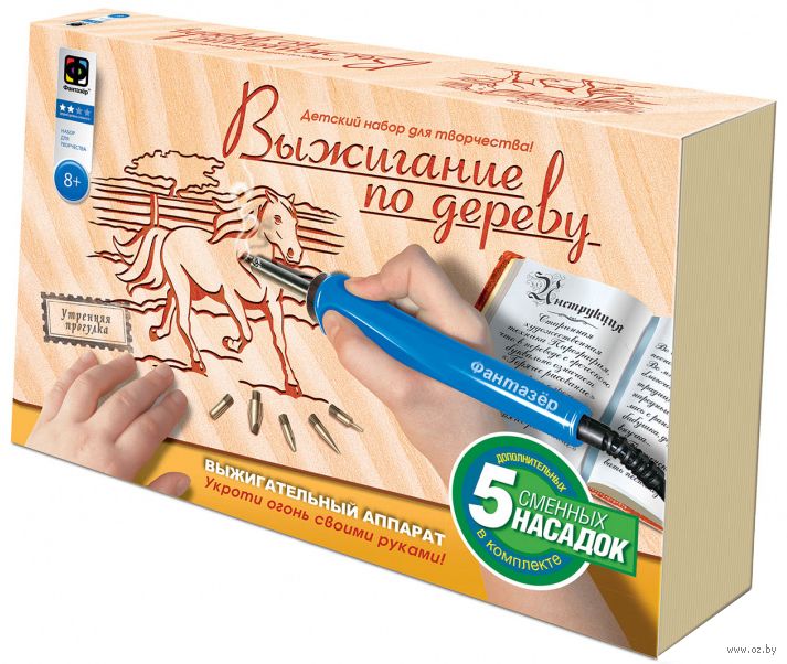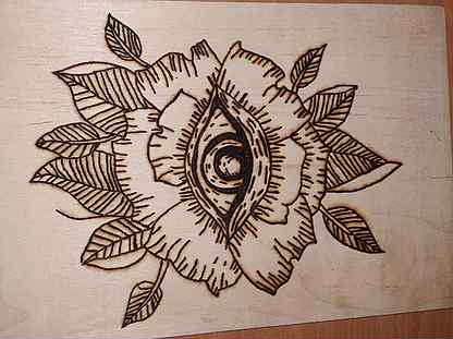 Плоскостное выжигание по дереву - основная картинка и фоновая часть расположены на полотне в одной плоскости . Глубокое выжигание - основная картинка расположена на уровне полотна, а фоновая часть искусственно углубляется при помощи ножевидных штифтов . Альтернативные способы выжигания: