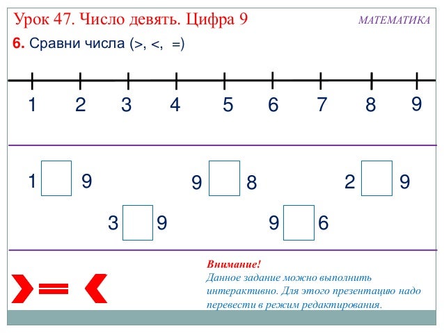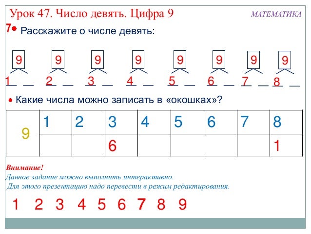 Урок в 1 классе, число 9 и цифра 9, презентация по математике . . .