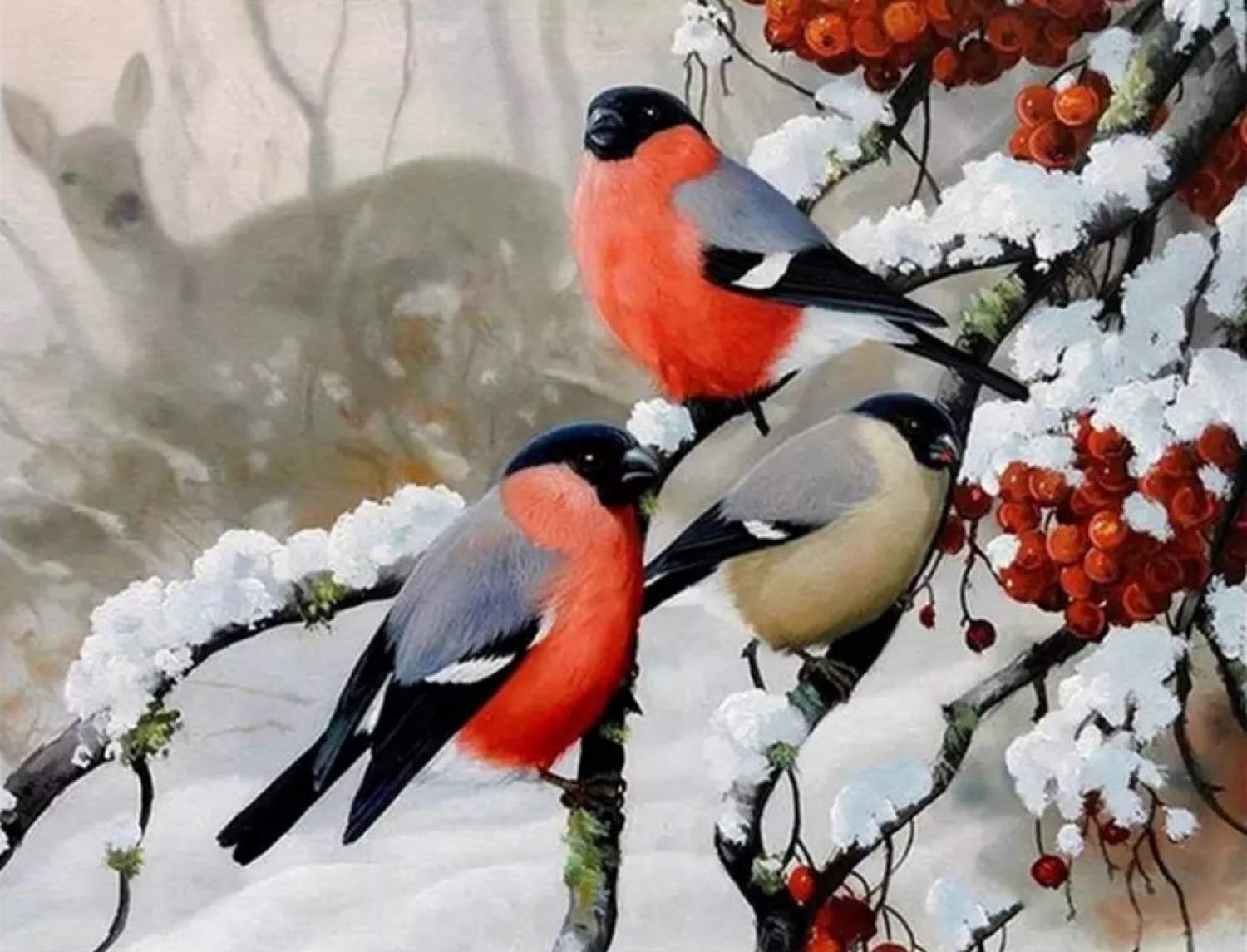 Картинки Зима Снегири Рябина 111 фото